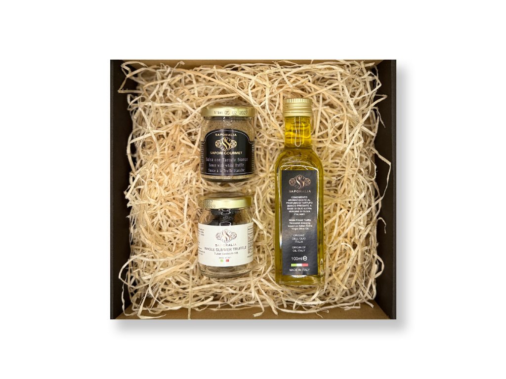 Tento degustační balíček je ideální pro všechny, kdo se chtějí s lanýži seznámit, ale i pro zkušené gurmány. Najdete v něm celý letní lanýž ve vlastní šťávě, lanýžovou omáčku pro rychlou přípravu lahodných jídel a extra panenský olivový olej s lanýžem, který i obyčejné suroviny povýší na luxusní pokrm.